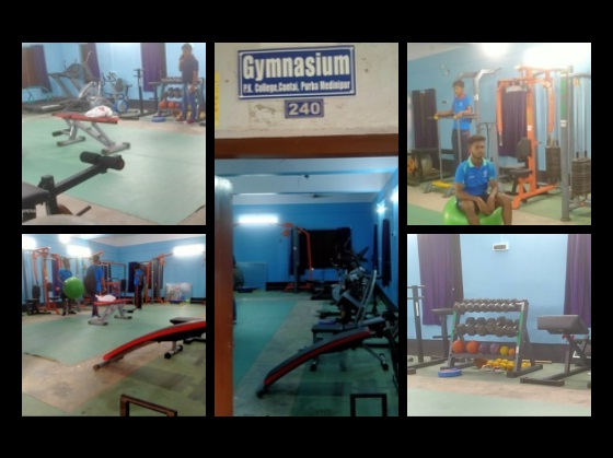 A gymnasium with modern fitness equipments has been developed at the ground floor of N. C. Roy Building with the financial assistance under RUSA scheme. It comprises of such fitness tools as motorized and manual treadmills, abdominal exerciser, abdominal machine, twister exerciser, AB Crunch machine, Health care equipments, fitness bike, cross trainer, leg press machine, upright bike, Health scale, bicep curl, etc. teachers as well as the students of the college are allowed to avail the facilities of the gym. The teachers of the Physical Education Department act as the trainer/s of the gym.